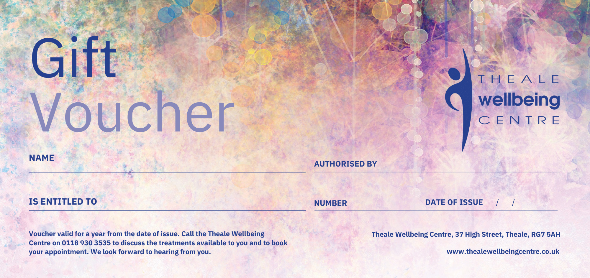 Gift vouchers are available all year round and make lovely gifts for special people. They can be used for all the therapies except counselling, hearing tests/products and ECGs, please check before your purchase. If you would like to purchase one call in to reception or call us and we are happy to post them out for a small extra fee.